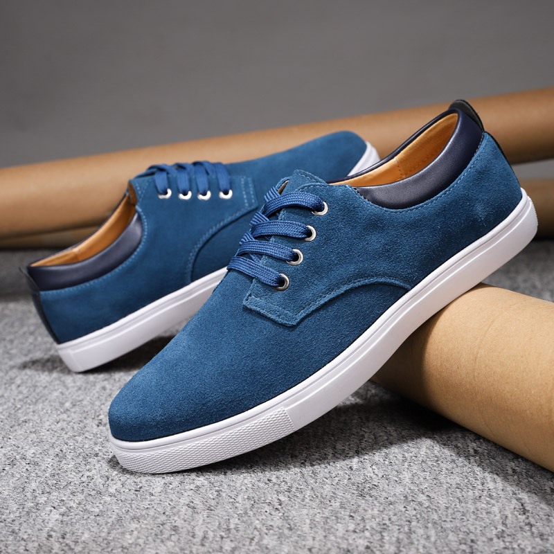A rich suede lace-up that bridges classic footwear and modern sneakers, defined by a dress-leaning plain-toe upper and a flexible rubber sole built for everyday movement. A contrasting leather collar detail adds a subtle point of character.